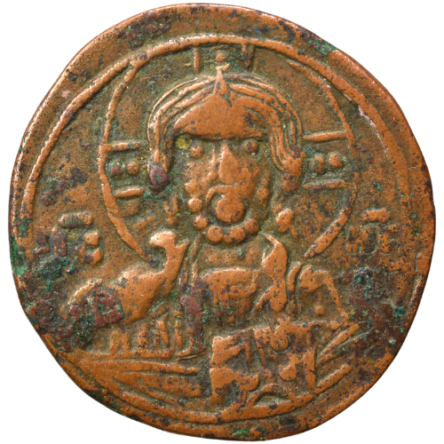 The copper coinage of the Empire, between the accession of John I in 969 and the great monetary reform of Alexios I in 1092, is differentiated from that of earlier centuries in two important respects: first in that all the coins have on them an effigy of Christ (a feature hitherto reserved for the gold), and 2nd in that most of them were not struck in the name of any particular emperor. In fact, no folles exist in the names of John I, Basil II, Constantine VIII, Romanos III, Michael IV, Michael V, Zoe, Constantine IX, Theodora, Michael VI, or Isaac I, a sequence of 11 rulers covering the space of ninety years (969-1059). Although the minting of signed folles was revived by Constantine X and continued under his successors, the issue of new types of anonymous coins did not cease and the evidence of hoards shows the two kinds of follis to have circulated side by side, presumably on an equal footing. The anonymous series was christened the Anonymous Bronze Coinage by Mr. Bellinger, but Anonymous Folles would be preferable, since the coins are of copper, not bronze, and are all of a single denomination.