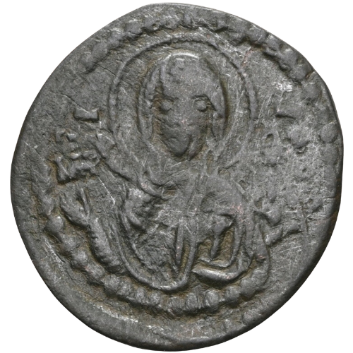 Rev: Facing bust of the Virgin orans, nimbate and wearing palium and maphorium; in field to left, ; to right, ᴠ; border of large pellets.