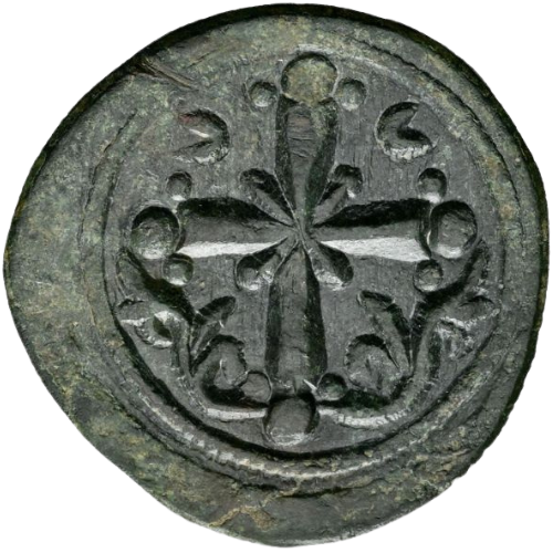 The leaved base to the crosses on Classes H and I and the crescent beneath that on Class J suggest a possible connection between these types and the designs of mid-11th-century imperial ornaments, since a cross with a leaved base forms the head of the scepter held by Constantine IX on his histamenon SB1828A and a rare variety of the same coin shows a crescent beneath the cross of the emperor's globus cruciger, but a cross with a leaved base is too common in religious art for much stress to be laid on this. Miss Thompson's suggestion that the type of Class I might be intended to symbolize the Christian cross triumphing over the Muslim crescent is unacceptable, since the crescent was a Turkish rather than a Muslim symbol and was not adopted by the Ottomans until after their capture of Constantinople. Nor can it have to do with the lunar crescent later employed to symbolize the Virgin, for this is peculiar to Western art—it does not occur in Byzantium—and is not known before the late fifteenth century.