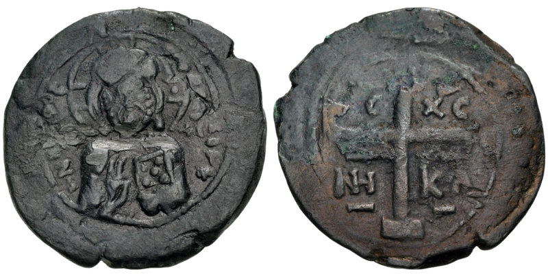 Obv: ​Bust of Christ facing, wearing nimbus cruciger, pallium and colobium; in field to left and right, ıc—xc.